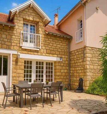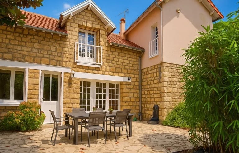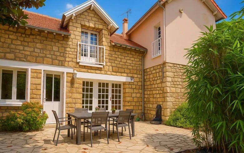 À Nesles-la-Vallée, cette maison en pierre allie charme et authenticité. Elle comprend une cuisine ouverte sur séjour, un salon avec cheminée, quatre chambres, salle de bain et grenier aménageable. Le tout s’accompagne d’un jardin bucolique de 470 m² avec dépendance, cave et puits — un bien rare alliant confort et caractère.